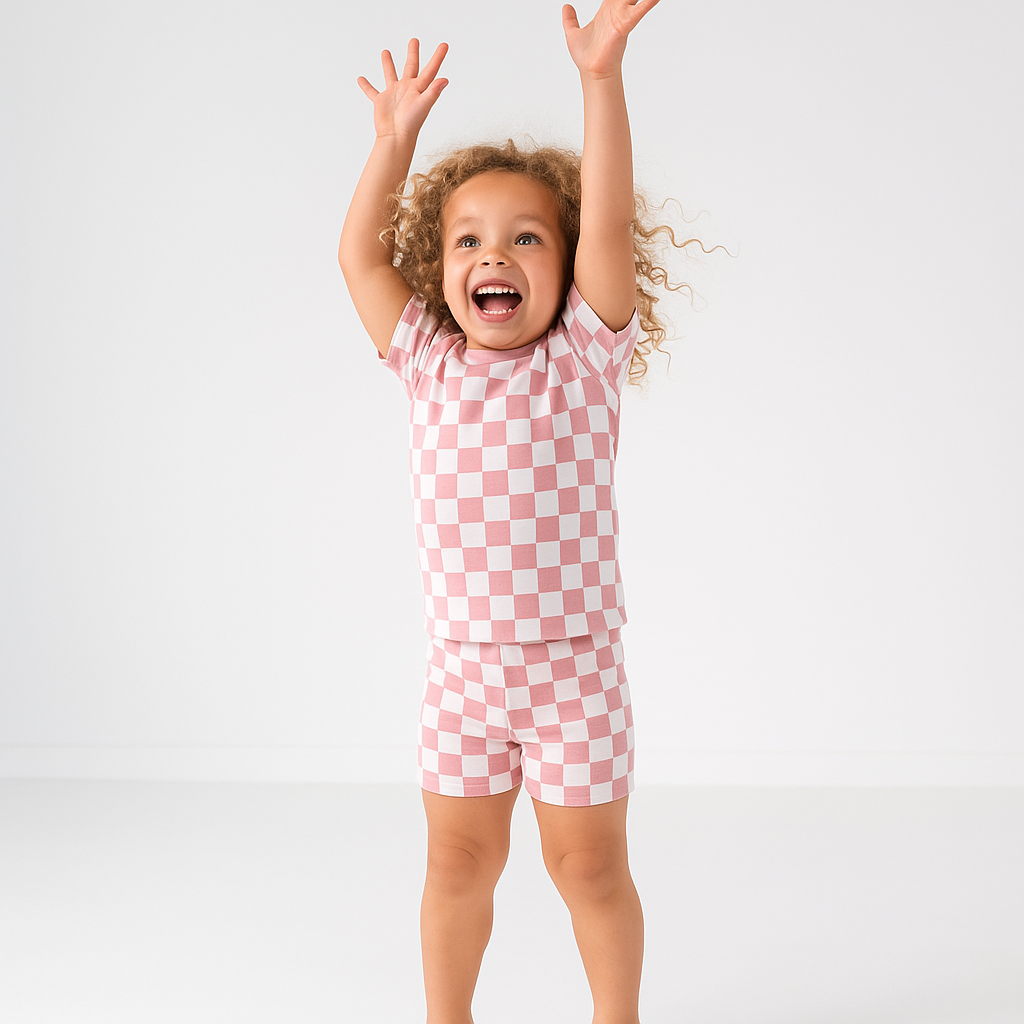 Let your little one play, sleep, and explore in ultimate comfort with our Pink Grid Bamboo Short Set. Designed with eco-friendly, ultra-soft bamboo fabric, this adorable two-piece set features a playful vintage checkerboard print in soothing tones of pink and white. Perfect for warm weather, this breathable and hypoallergenic set is gentle on sensitive skin and ideal for toddlers prone to eczema or irritation.