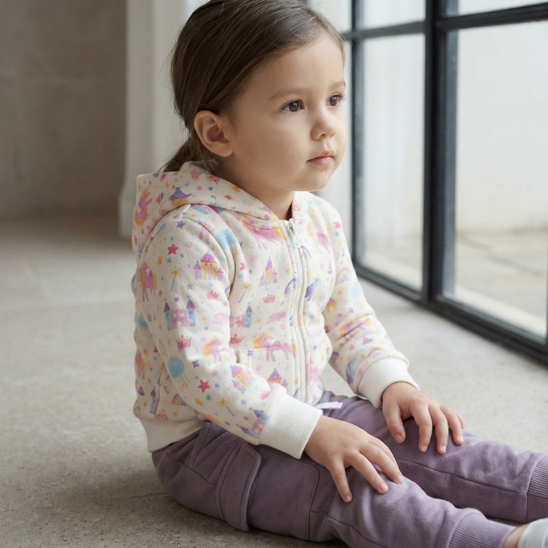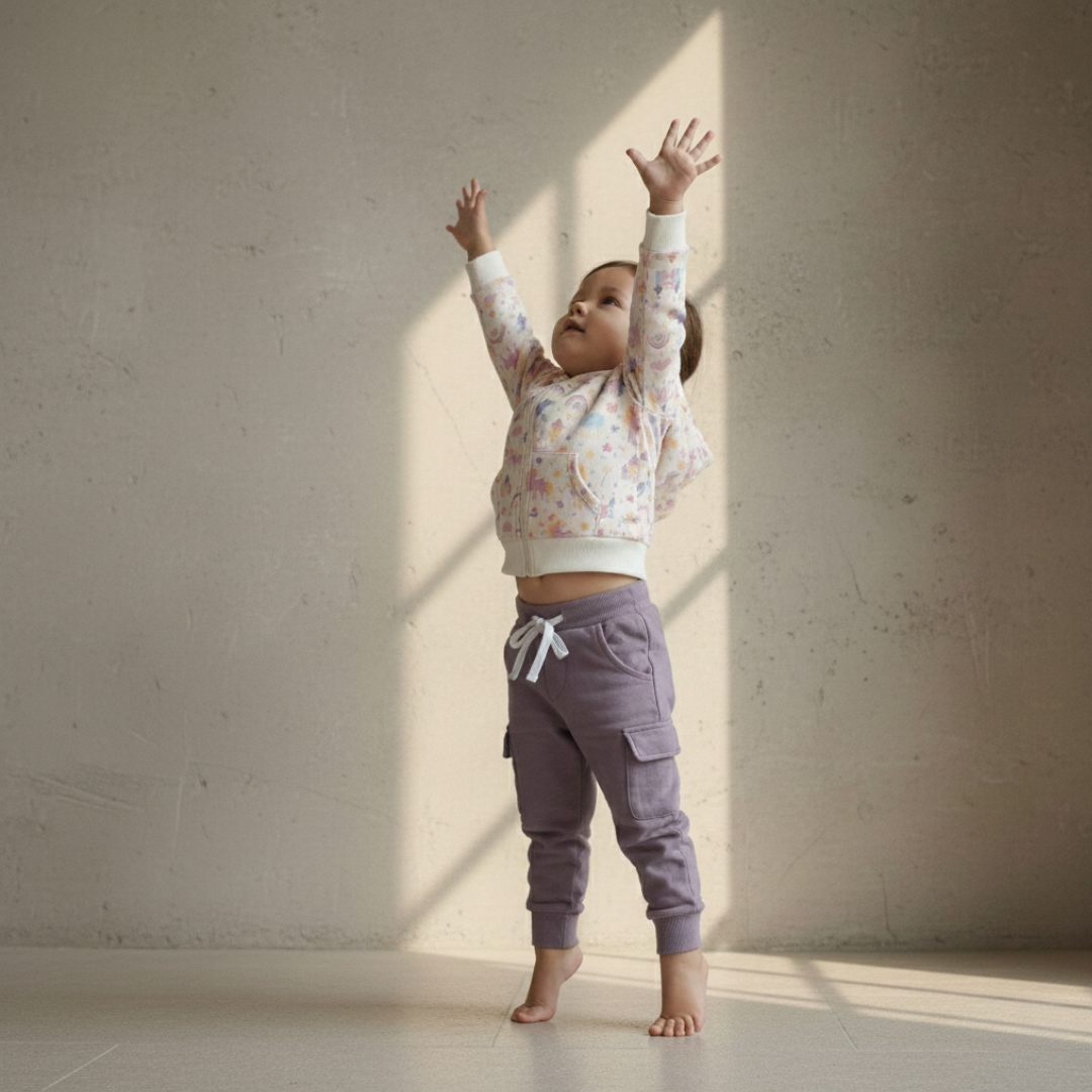Stretchy fabric designed to move with your little one for all-day comfort and play.