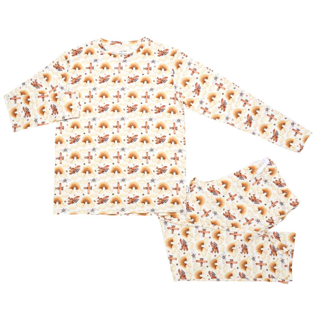 Men's Adult Bamboo Two Piece Pajama Neutral Skies